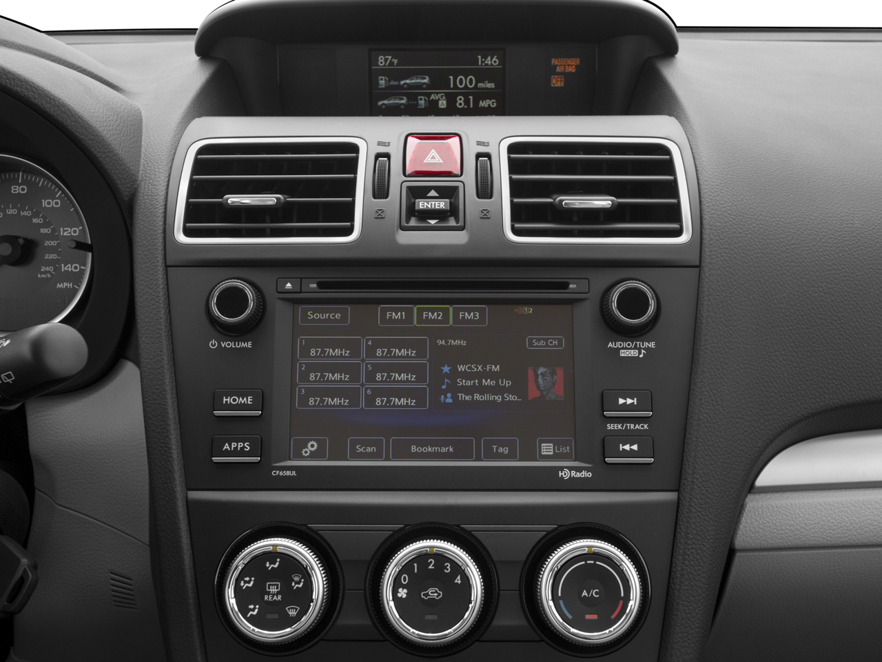 • Radio: Subaru Starlink 6.2'' Multimedia System; AM/FM stereo HD radio w/single-disc CD player w/MP3/WMA/CRR/RW file capability; simple touch gesture high resolution display; 6.2'' LCD screen; Bluetooth® audio streaming connectivity; Bluetooth® hands-free phone connectivity; iPod control capability; rear-vision camera; smartphone integration: AHA and Pandora; Starlink cloud applications: calender; Glympse; iHeart Radio; music player; news; Stitcher and weather; USB port; 3.5mm auxiliary input jack; 4 speakers and body color roof mounted audio antenna StarLink enrollment cannot be applicable to Fleet Management Companies (FMCs) or to Commercial fleet accounts at this time.